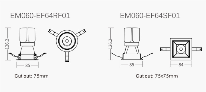 | EM060-EF64RF01-24D | 15W | 350mA | 1199 lm | 90+ | 3000K | 24° |